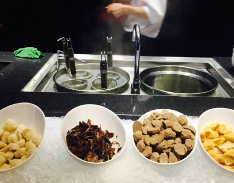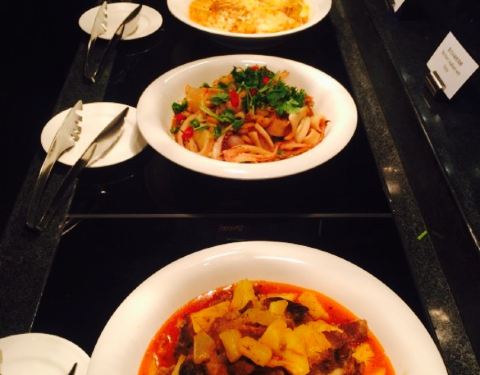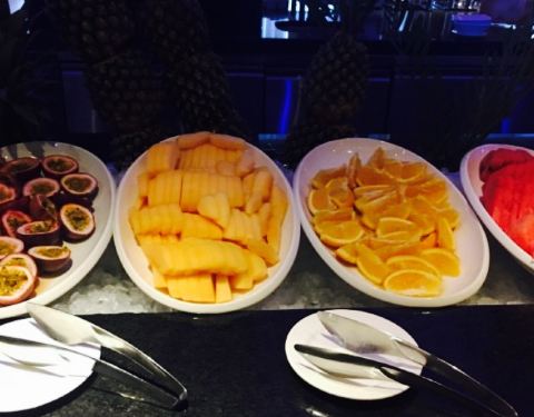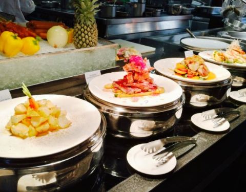 这家自助餐厅就在万达茂旁边的南宁万达嘉华度假酒店一层,品种比万达文华酒店多,装潢风格不一样,可是绝对能达到五星级大酒店的水平。服务生都是十分有礼貌的,不过有一个弊端,像我一个人去用餐的话,拿了一些食物放在自己的餐桌上,回头想再去拿其他的食品,回到自己座位发现食物已经被收走了,敲尴尬啊。并且是同一种食物被收走三次。三次啊。我都心灰意冷了。好听点说是服务员眼疾手快,不过特别不人性化啊。对于这一点能不能想个办法解决呢。比如发个翻牌卡给单独用餐的旅客,绿色面表示该座位的客人在取餐,红色面表示已经用餐结束。对于食材方面还是很清新的,海鲜粥真的超鲜甜呢。里面竟然有一整个龙虾头。甜品区有新品的话服务员也会主动推荐哦。比如梳乎厘就是服务生推荐给我的,因为要用温度保持口感,都是放在特定的地方,不容易看见,主动推荐这一点就做的很好。生冷区有金枪鱼刺身提供,这个在南宁其他自助餐厅很难见到啊。要知道日本人最爱吃金枪鱼啦,三文鱼对他们来说是低等食材,并且基本不会生吃,都是煮熟了吃。所以这家有金枪鱼提供真是高大上啊,可惜口感还是欠缺了一点点,但是已经很不错了。来万达茂玩的话可以顺便来这里吃哟。