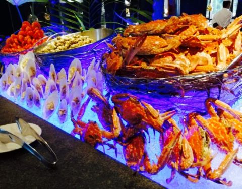 五象新区新开的万达嘉华酒店,小伙伴们决定去拔草它们家的自助餐。【口味】总体味道还行,菜的种类有点少,有铁板烧,刺身寿司,海鲜,烫煮类,烧卤,甜点等。每人限量一份芝士大龙虾,哈根达斯冰淇淋不限量吃,刺身里鲷鱼的口感最好,墨西哥牛肉卷和千层意面味道也还不错。我感觉需要改善的地方就是,7点就已经停止上虾和蟹了,导致来晚的朋友连虾和蟹的影子都没看到。【环境】环境五星没得说,服务也非常到位。