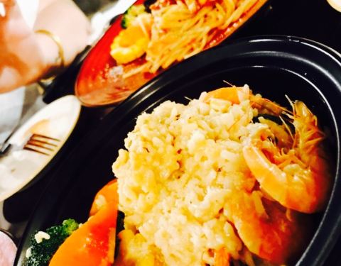 冰梅柠檬茶 泰式奶油猪时蔬意面 粉红鲑鱼炖饭 粉红鲜虾炖饭 沙拉 茄汁时蔬手工丸子意面 山粉圆冬瓜茶 泰式奶油鲜贝顿饭 茄汁香料烤鸡排意面