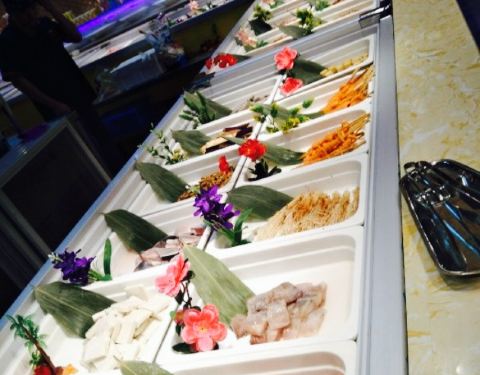 - 【口味】这里食材有很多种,有烧烤,有火锅,有一点熟食,有凉菜,还有海鲜,甜点,蛋糕,糕点寿司,...