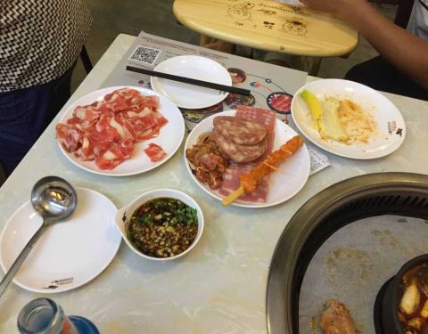 位置在四楼,门口有迎宾,十分热情。到了直接指引到前台,结账,交20押金,然后安排位置。有熟食,火锅,烤肉,锅底无需重新收费,上锅底前服务员会询问要什么样的锅底,辣或者清汤,可以按个人口味进行选择。菜...
