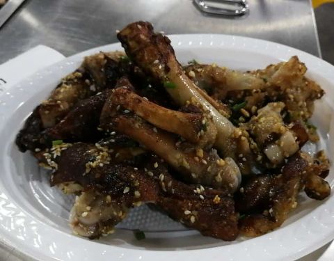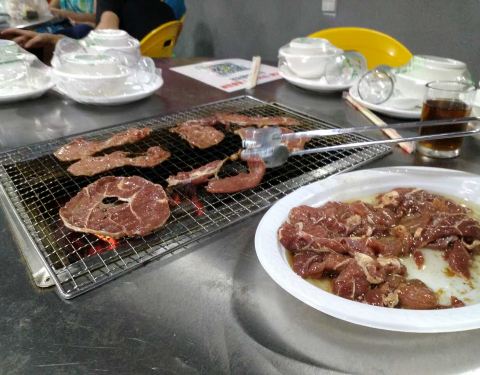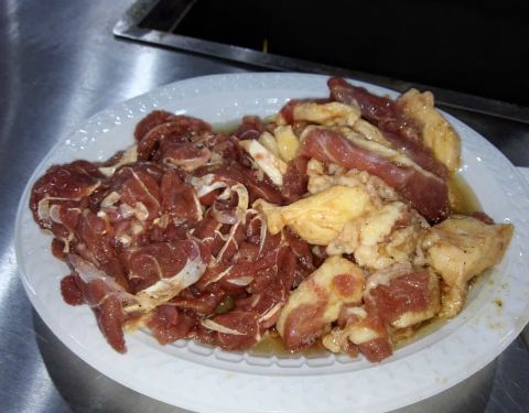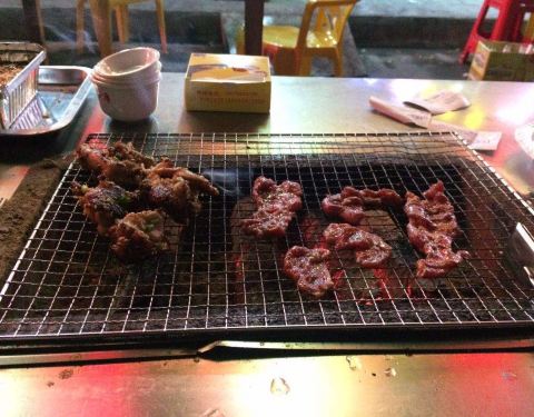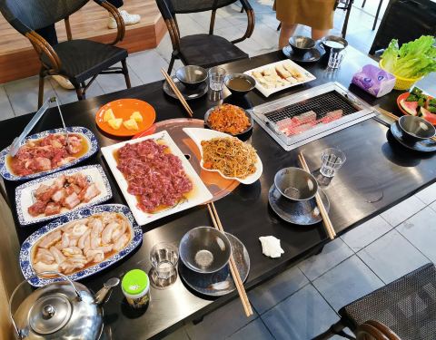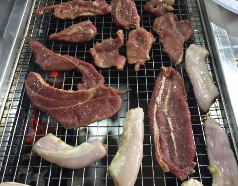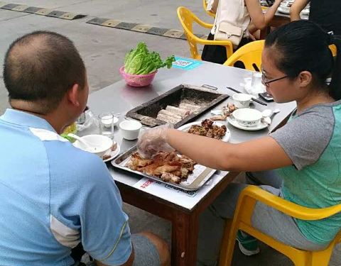 环境一般,荔枝烤鸡味道不错,烤猪蹄大多都是骨头,基本没有肉和皮,而且有六七个猪蹄尖,明显掺假,生牛肉是微腌制过的,自己按生熟度的需要来烤,味道的话,仁者见仁,智者见智吧,另外可能是十一点多去得晚的原因,蘸料基本没有了,有些遗憾。