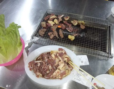 - 烤肉还行,最后还送了免费的爆米花。店内空调不给力,炭火非常热