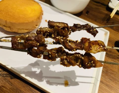 回石家庄朋友中午在这里请客吃饭,店面不是很大,里面装修的很文艺,比普通的烧烤店感觉有氛围的多。尤其是晚上很适合情侣去坐一坐。这家烧烤店应该是用的电烤,烤出来的东西看起来比较干净,烤面包很脆很好吃,烤茄子也很好吃。最喜欢的是烤猪蹄,非常软糯,几个人分上一盘感觉很不错。以后有机会还会过去坐一坐。