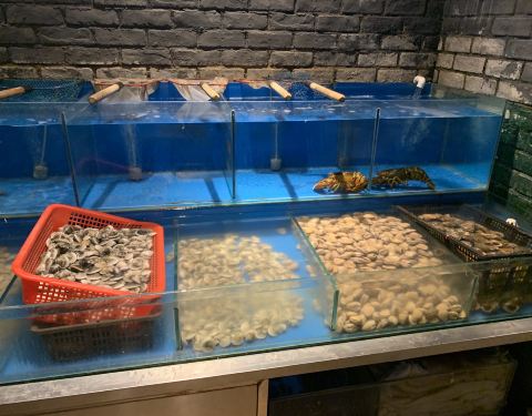 「地点」槐安路谈固东街东南角,永辉超市对面,停车便利,门牌很大,好找。我们去的那天可能因为刚降温,吃烧烤的人不多,这家店据说在唐山很火,觉得都是远道而来,好几拨人都是先走到门口观望了一下才进来。「烧烤」他家应该海鲜是特色,不过前两天刚吃了海鲜自助就没点什么海鲜,也是提前做了功课点的烧烤,看下来价钱略高一点点,只是吃到才发现有特别之处,肉腌制过刷的佐料也有特点,烤排骨和鸡翅很入味,甜口也不是很辣,鸡翅上来都挺熟的,特别腻歪看到带血丝的,羊肉串有大有小,大串焦香可口,就是感觉18一串贵了点,味道真心很不错,鸡爪烤的也不干,挺香的,虽然肉类看着表面调料差不多但是味道吃起来并不一样,大伙推荐的烤猪蹄和面包也点了,猪蹄皮脆内软,不腻,撒的料也很香,多改几刀会更方便吃,面包是菠萝包,表皮酥甜内里还是面包的软香,应该是刷了东西烤的,好吃却怕胖哎,要了锡纸烤茄子 。金针菇和地瓜,茄子觉得有些淡,但是很熟烂,红薯满满的都是小心型,不夹生,但是应该是刷了东西,热到最后成汤了,金针菇蒜香口入味,整体感觉一顿吃下来挺饱的,吃了好多样,四个人去挺适合,不少都是四个算一份起卖。商家还提供免费的热酸梅汤,好喝不齁,服务员个别感觉太随意,加了单扭头就走也不核对,有的态度就很热心,他家能租借充电宝,但是那天屋里还是觉得略冷,再冷点建议开空调。我那天在他们店门口看到一只黑白奶牛猫,站在花盆旁边好可怜,我给了猫粮吃饱了他走了,估计是常客,大家有人见到了就喂喂吧,大冷天不容易呢,刚又中了新美大的活动,得了代金券,喜欢,过两天去尝试海鲜,??。