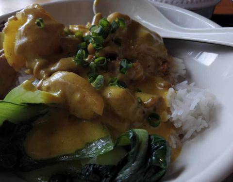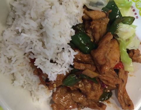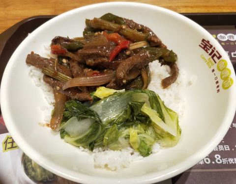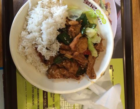 以前一直吃咖喱鸡块饭,最近新品出了黑椒牛柳饭成了新宠!