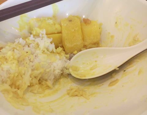 分量足,好吃,有一点点辣味,土豆软糯,萝卜很入味,鸡肉分量足,很嫩,很好吃,吃的很饱,店里只配了热水,有常温或者冰的就更好了
