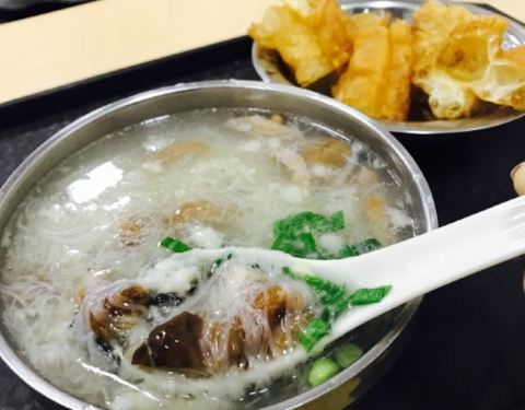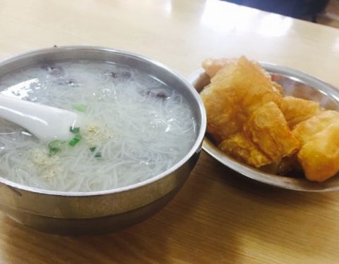 店很小 。稍不注意就错过 。食客很多 。必须拼桌。对面坐的两个女生是当地人。说这家店很多年头了 。很有味儿。他们当地人也常来惠顾。跟他们点了一样的面线糊 。油条和萝卜糕。面线糊的料选了人气的大肠和醋肉。大肠没有腥气 。小有嚼头 。醋肉微酸不腻。面线糊口感润滑 。胡椒味略明显 。现做的很烫 。非常适合搭配油条一起吃。油条薄脆 。泡进面线糊只需几秒就好。外软内韧 。既吸收汤汁鲜味又保有油条香气。萝卜糕微炸过 。可是是冷的 。就还好。