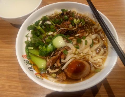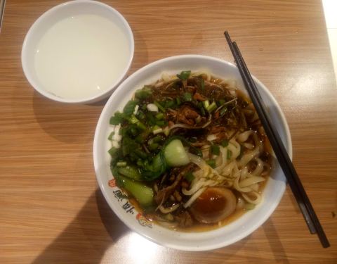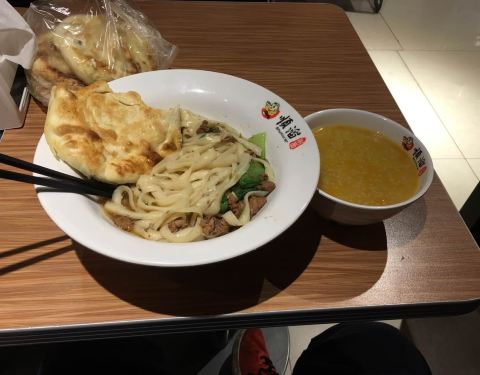 猪肉面,自己带的饼,送的南瓜小米粥,一个人吃够够的了,喜欢吃刀削面,开动!