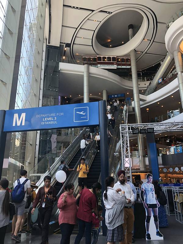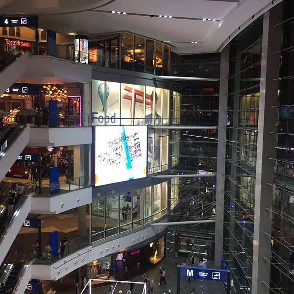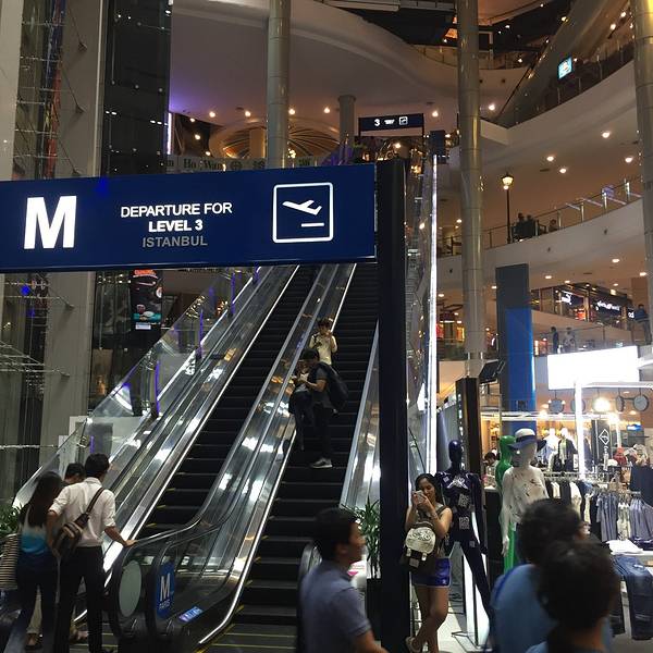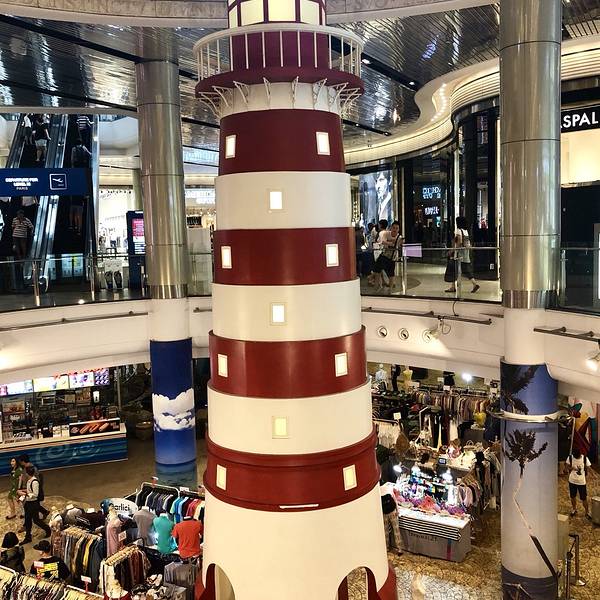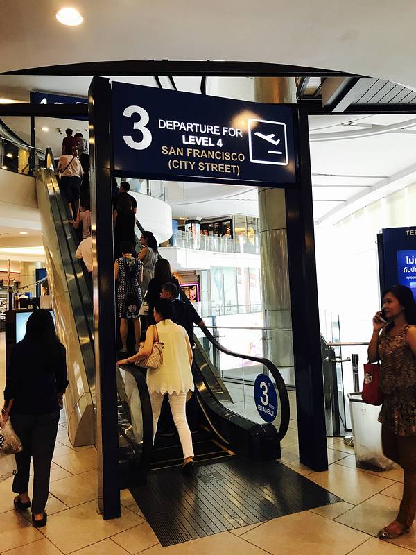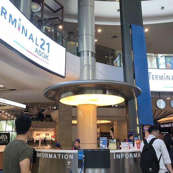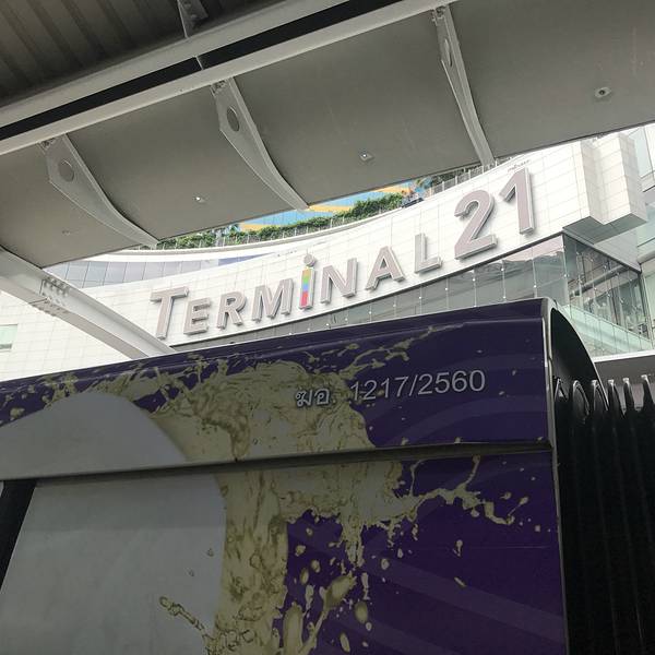 又是睡到自然醒,临近中午出门。 搭乘BTS达到【Asok站】,出来就看到【Terminal 21】了。【Terminal 21】是一个商场,里面都是私人小店,卖一些小东西,类似成都的Ego,但是整体比Ego要高端哈。 每一层楼都是不同国家的主题,还是很有特色的,拍照很好看,还可以下午茶,女生会很喜欢。我刚下BTS的时候拍的,出来就看得到Terminal 21这几个大字。每一个楼层标识都是做成机场的那种。
