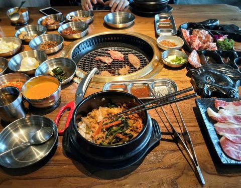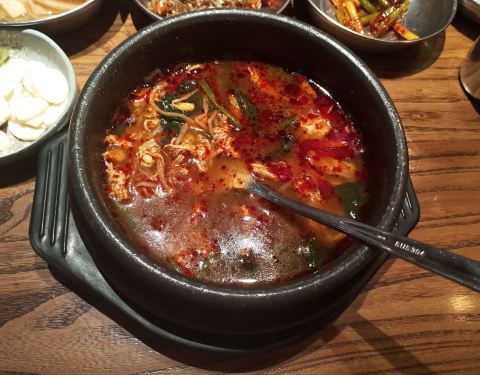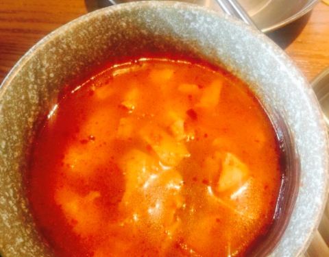 闺蜜推荐的,专门去他家喝梅子酒的,酒很好喝,酸酸甜甜的,酒味不重,特别适合女孩子,点了一个泡菜拌饭和牛肉拉面锅,牛肉拉面很大一份,够两个人吃,但我感觉味道一般,不高兴。泡菜拌饭很入味,算是吃过韩国料理里前两名了,还送了四个小菜,都不错,南瓜糊糊不错,很开胃,去吃肯定要在九点去,有表演。