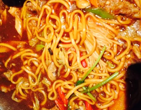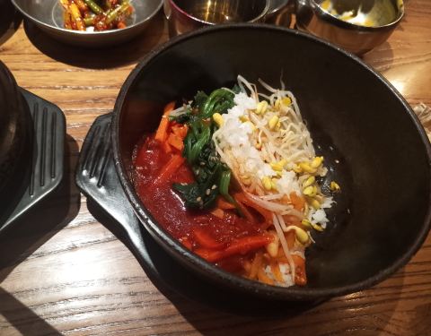 闺蜜推荐的,专门去他家喝梅子酒的,酒很好喝,酸酸甜甜的,酒味不重,特别适合女孩子,点了一个泡菜拌饭和牛肉拉面锅,牛肉拉面很大一份,够两个人吃,但我感觉味道一般,不高兴。泡菜拌饭很入味,算是吃过韩国...