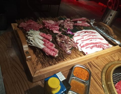1)味道,不错哎,这次吃的2人套餐,是普通牛肉,本人觉得雪花牛肉更棒啊,并且价位也能接受,雪花牛肉那个颜色看着就有食欲,二人套餐超级划算,248元吃的好饱,哇哈哈,吃肉好开森。2)环境,新装修,空间大,排烟不错,烧烤没有那么大的油烟味。3)服务,很好很满意,服务有保障,有服务意识,培训到位。过了饭点用餐的客人已经不多了,服务员很敬业的在旁边一直帮我们烤。4)位置,天津路一号美食街A区,最北边头上第二家。5)停车,美食街可以停车,但是车位相当之紧张,平均下来一家餐厅也就2个车位,根本不够停的。