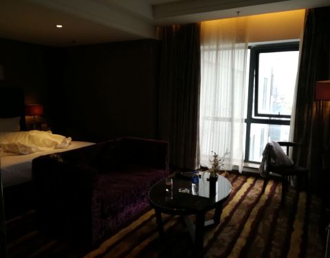 入住大床套间房真的假,面积不大、茶几柜子都是灰,卫生间下水不通畅积水严重