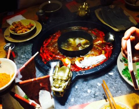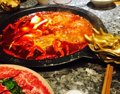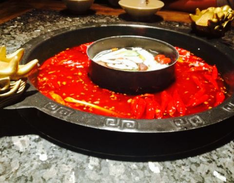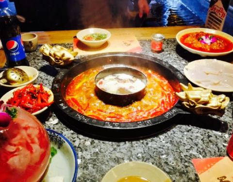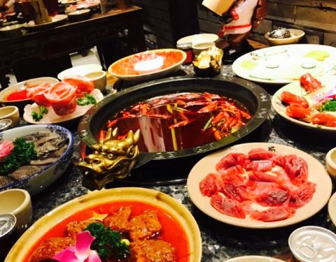 离新天润小龙坎很近,内部装修风格也相似,这家活泼一点,牛肉味没有小龙坎那么重,味道还是很不错的,推荐的花千骨,舌尖上的蜀大侠很特别也很鲜美,香蕉酥夹也很不错,服务生非常热心,还看了变脸表演,6,8折的力度还是很不错的,整体来说很满意。