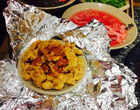 碗碗鲜鸭血很清新,在火锅汤里多煮一会很好吃。铝箔炸酥肉沾小料很香,菌类拼盘石材很清新,吃火锅必点