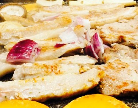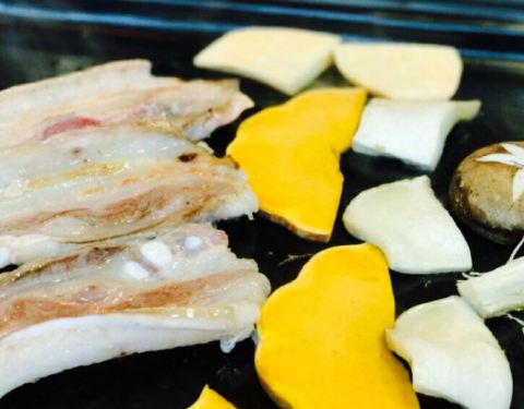 这家店就是吴铭火锅楼下,同一部电梯到二楼就行。店面不是很大。和朋友点了168的套餐然后还加了一份五花肉,点好菜后会有小菜赠送,还有一小碗南瓜粥。送的小菜里面有个土豆泥很可口。这个五花肉吧,没烤之前觉得...