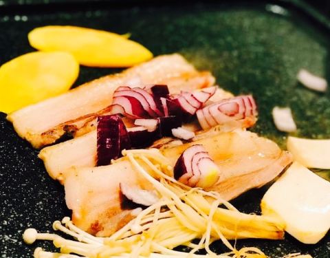 black 。pig。柯桥那家去了两次,这次和朋友到绍兴银泰逛,不晓得吃什么就选择了它。满怀期待去的,毕竟柯桥那家在我心里留下了特别好的记忆,但现实,还是有些失望的。同行的只有一个小伙伴,饭量小,我们单点了一份猪梅花肉和澳洲牛五花肉,烤秋刀鱼,铁板炒饭,这个朋友不太熟,也就没好意思照相了。??。首先说服务,对她家的服务我一直是服气的,肉都会主动帮忙烤好,加小菜也很勤快。主要说说这次的烤肉。牛五花薄薄的,很容易熟,猪梅花圆圆的三片,很厚实。不过。我和小伙伴一致认为这肉实在是太肥了,真的好肥,好油,吃到嘴里油汁就爆出来那种,真的是太腻了,以至于有一半的肉我们都没吃完。只是牛肉的味道还是很浓很香的。秋刀鱼其实挺好吃的,肉质厚实很大一条,配上芥末酱油可以说很鲜美了,不过肉吃得太油也吃不下多少了。吃过两次之后还是惺惺念念的黑猪韩料,这次算是拔草了。