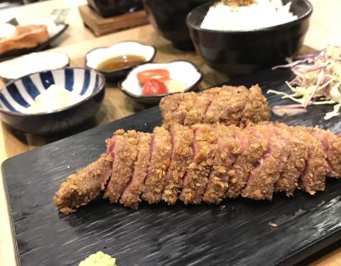一看到这牛肉就直流口水 这吉列牛必点 这牛肉用油先炸过表面熟内生 吃之前在烤盘上烤一下表面熟即...
