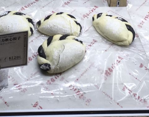这家面包店就在新城市广场一田超市的入口处,靠近食代馆那个方向。里面的面包看上去就是典型的日式面包,新奇的是在这里看到了饺子形状的面包,都有着饺子漂亮的那个花边。里面包的馅料是抹茶、或者是朱古力、或者是芝士,还有蓝莓,其实吃起来也就是面包的味道,只是在造型上有了新颖的创意。