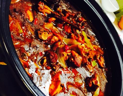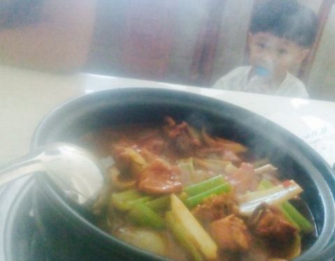 第一次吃这种口味的,当时在上班。同事说去吃鸡煲吧,我还以为是盖浇饭i到了发现是火锅类型的,位于怀远东路与西花园交叉口,有一家汉庭酒店,顺着这个巷子进去就能看出,进入后,店员还蛮热心的,觉得挺不错的,人还挺多,据说许多人是老城过来的,很有味儿,4个人点了大份,没有吃完。