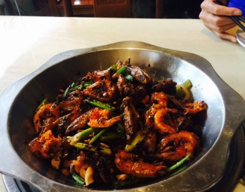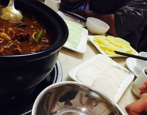 之前吃的时候是在路对面的老店,现在换了位置,大了不少,装修环境也不一样了,和朋友一共三个人,菜谱上只有中锅和大锅,必然是吃不完的。还好问了一句没有小锅吗。答案是有的,是老板故意不把小锅放在上面么。要了小锅,小锅送两个涮菜,点了豆芽和土豆片,份量都不错,这个时候的鸡肉真心是太老了,嚼不动不说还塞了满牙缝都是,太难受了,只是汤还是很赞的,泡着米饭真心很美味,由于带了孩子不能吃辣,单独点了一份蛋炒饭,份量也是很足,味道也不错,鸡煲总体来说没有之前的入味了。三个人点了小锅,两个涮菜,三碗白饭,一份蛋炒饭,三套餐具,一共108。吃的很饱呢,给去的朋友做个参考。之后给老板建议鸡肉炖烂一些就更好了,问了一下怎么没有团购呀。老板娘说是才取消掉了,原因是鸡煲价格本来就已经很低了,所以做成团购不划算,但是这个价位的确是比较实惠了。