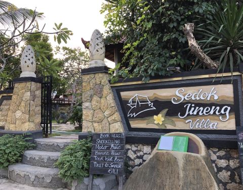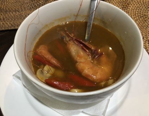 在蓝梦岛住的这家sedok jineng,为了看日落方便,位置不算太方便,附近也没什么店,晚上太黑也不高兴出去就在店里吃的。 选择还蛮多的,海鲜泰餐印尼餐都有,点了份冬阴功不知道为什么,味道还不错,有2只大虾,6...