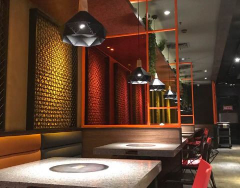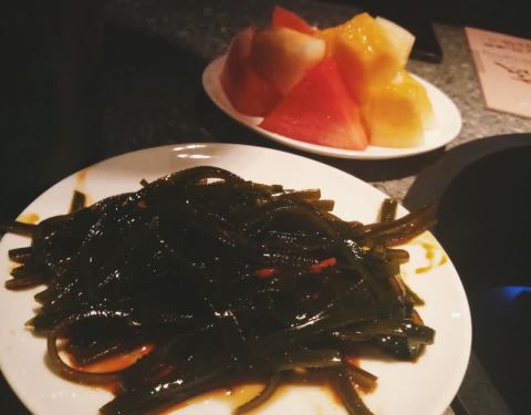 位于银泰城5楼,肯德基这边的旋转电梯,就可以见到了,很好找的地方,环境干净卫生,很开阔,服务态度很好,点了一份干锅排骨虾,排骨是炸了,味道还可以,虾挺多的美味,有土豆片,洋葱,芹菜,胡萝卜等配菜,水果茶,赞很美味,就是咸了一点点??还有一份凉拌牛肉,不错,点了一份小吃,绿茶饼,里边的馅是香芋,鲜美,还有一杯。