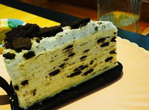 - 还有一份凉拌牛肉,不错,点了一份小吃,绿茶饼,里边的馅是香芋,鲜美,还有一杯