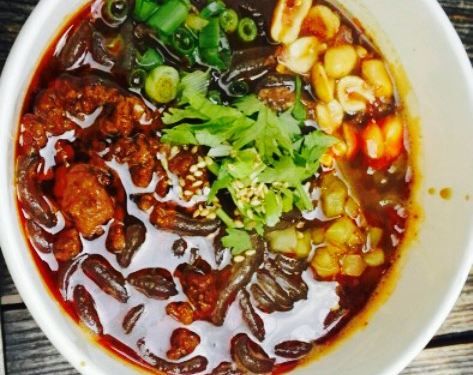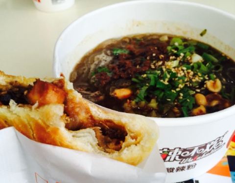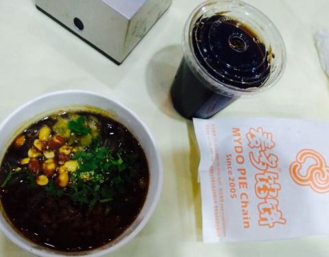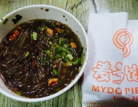 来王府井第一次吃酸辣粉,因为自己不能吃辣,很少吃这类的,朋友特别喜欢她家,我就决定来尝试。这家店就在麦多馅饼旁边,我建议还是买套餐比较实惠,一个馅饼一碗酸辣粉一杯酸梅汁正好。她家可以做不辣的,比较合适我,但是吃酸辣粉不要辣不舒服,要了个酸辣的,有些接受不了呢。里面有我最爱的花生,还有肉末,颜值很满意,汤有点咸,量不是很多。店里人好多,尤其是饭点,他家还有外卖,很赞。