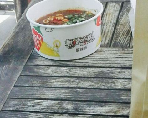 无辣不欢的酸辣粉在王府井这边开了时间不短了,现在酸辣粉是8块钱一份,套餐分得更细致了,隔壁家所有的馅饼口味都能选择。中午过来用餐的人不太多,不晓得是不是天气热了的缘故,这个季节还不开空调的。酸辣粉一般都做得很快,但是这次吃到的粉煮得太烂了点儿,有点儿粘,口感不怎么好,不吃香菜的童鞋一定要提前通知不要加香菜。这个天在店外面吃还是很清爽的,但是就是就是柳絮杨絮纷飞比较烦人。这里有外卖,来取外卖的小哥倒是不断。