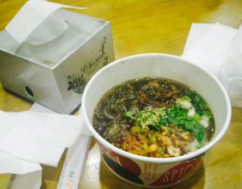 很美味,性价比还是比较高的,相对来说比辣趣家好吃,关键是口味纯正,麻辣鲜香的口味较好,最喜欢他家的麦多馅饼,强烈推荐照烧鸡腿的,里边的肌肉很多,和新奥尔良鸡腿的口味差不多,娃娃也可以吃,几乎没辣味,但是粉的量较少,爱吃的朋友可以点两份的,在这边想给卖家提个小建议,店里有些小了,尤其天气热的时候,人不少,店里虽然开着空调,只是人挨着人,并且很多人站着等不到位置,建议店家扩大一下规模,满足我们这些辣粉迷,给我们一个舒适的吃饭环境。