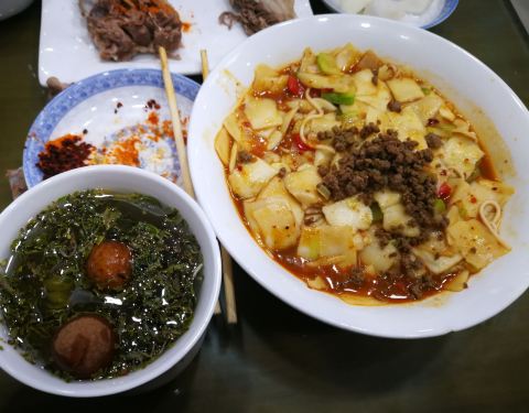 味道不错 价格不贵 要了半斤手抓肋排 一份炒面片 赠送的泡萝卜 自助盖碗茶 一人就餐 44元 经济划算