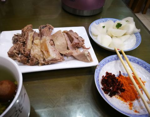 第二次来吃了,海东这家路边上的手抓肉店,非常正宗非常好吃的手抓肉,炒面片配手抓肉,很赞!免费赠送盖碗茶,小菜和瓜子,感觉好幸福!
