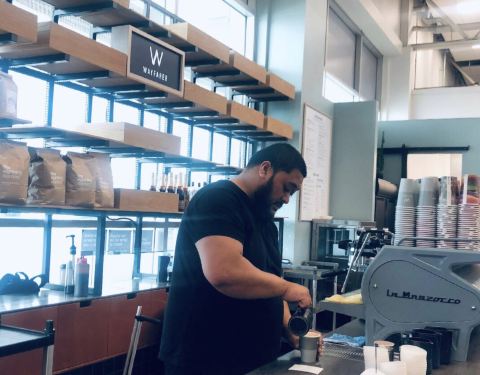 Wayfarer 咖啡轻食厅,Eighthirty的咖啡豆,橱柜里杏仁橙味蛋糕,拖鞋包三明治,新鲜水果杯,菜单上有早午晚间三个时段分类餐,沙拉碗,贝果好味… 选择丰俭由人。咖啡很好喝,迷你蛋糕很讨喜。出发前的小小犒赏...