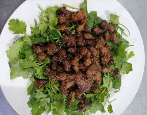 今天晚上很冷,吃了个烤羊排,色泽金黄,两面酥脆,口味很好,点了干锅菜花,烧茄孑,吃的热呼呼的真好,干净卫生,服务很好。