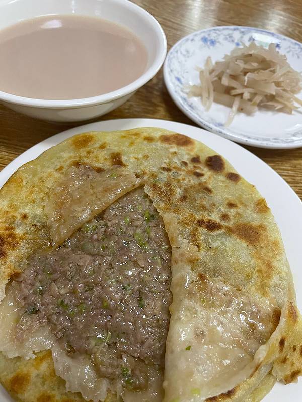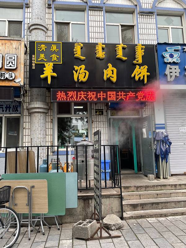 清真寺旁的羊汤肉饼老店,肉饼真的鲜嫩多汁,6元/个,奶茶是蒙古奶茶,咸味的,只要2元一碗。