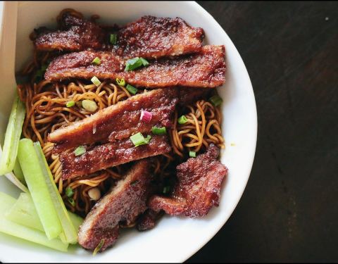 而全蛋面口感也 Q 弹。这里的猪扒处理得很好,肉质柔软且保有肉汁