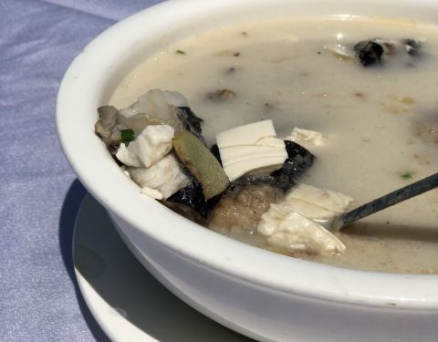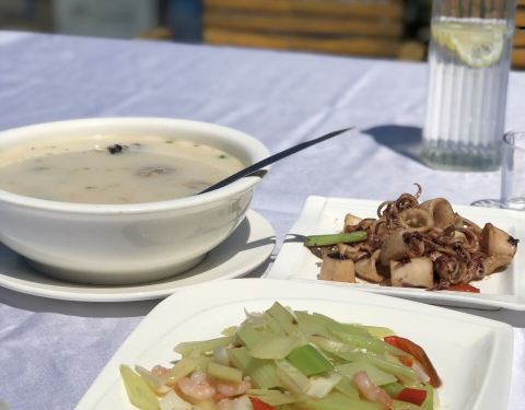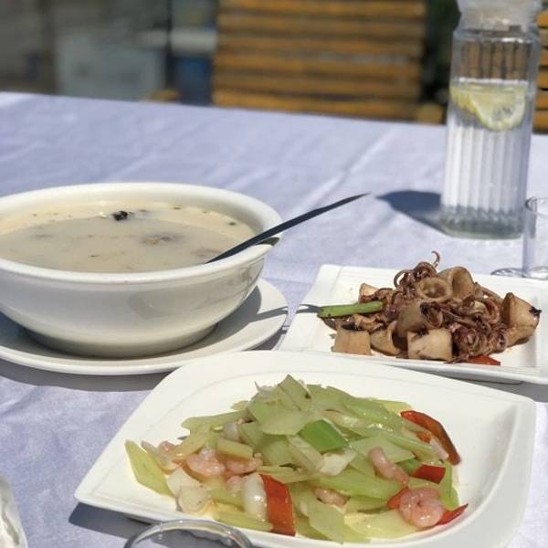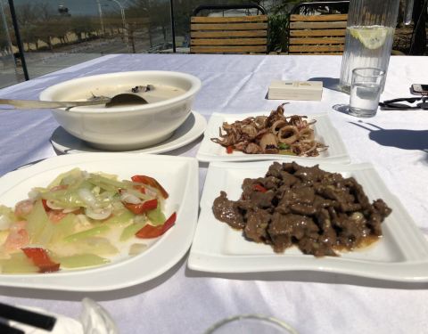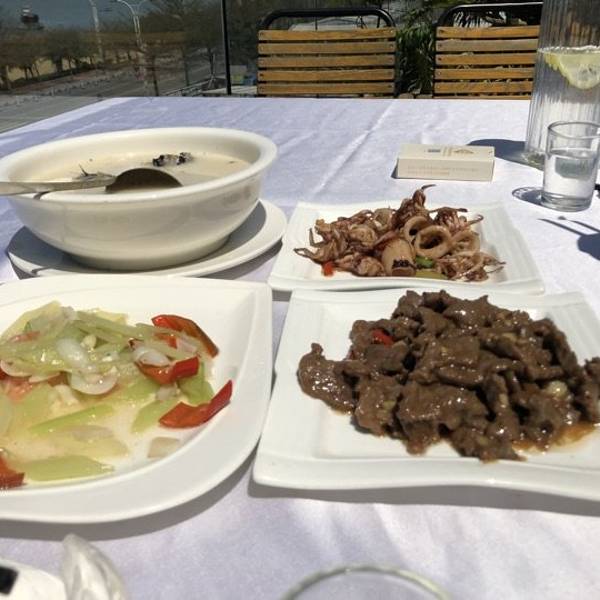 外琨塔海岸酒店音乐餐吧 中午到的时候不觉得是音乐餐厅,但是到了晚上就明白其中的含义了 楼下音乐喧嚣震天,特别high 餐厅是酒店里面的,我们因为住在这个酒店,实在不想走了,就在这个酒店吃了午饭 位置:海景大道北部湾一号东侧 坐在这里吃饭可以看到下面的海景,虽然这里的沙滩并不是很好看,但是能在2月底看到如此海滩很开心了。 酒店有非常优惠的4人套餐,我们3个人吃的非常饱 本来太阳还不是很猛烈的 但是等我们坐下来以后,太阳就越来越猛烈了 所以还是要选择有太阳伞的地方吃饭 或者在室内吃也是可以的,但看不到室外美丽的风景了 鱼肉豆腐汤,真心觉得很大过哦,鱼腥味还好,不是很重,能接受,豆腐很大块 鱿鱼筒,煮的不老,嚼劲很好,不错不错 沙姜牛肉,这里的份量真的很多,和我们平时吃的大盘子小分量不一样,牛肉很嫩 百合云耳炒西芹,里面还有虾仁,西芹可以多吃点,据说是瘦腿的哦 还有一份炒时蔬,这么多真心是吃不完 中午吃饭的人不多,价格真心很实惠,酒店很赞