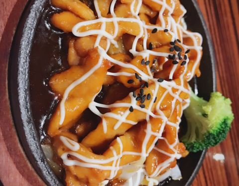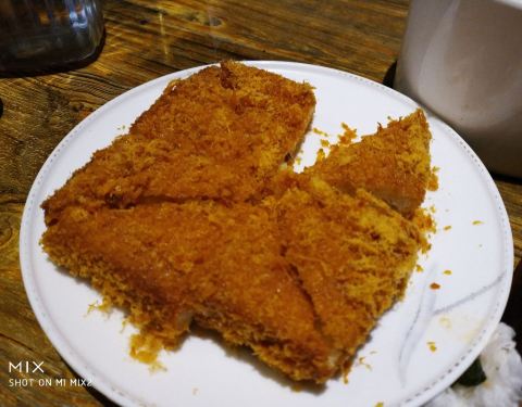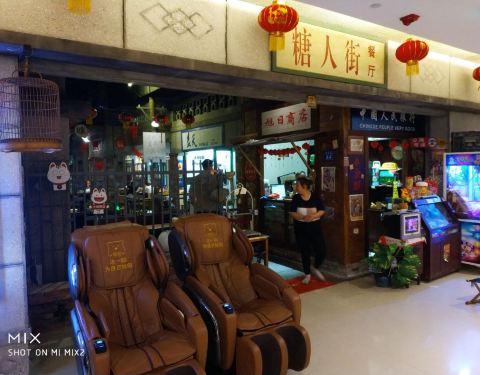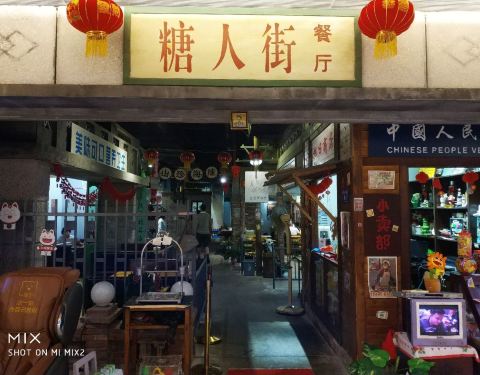 新开的一家80后怀旧主题餐厅“糖人街”装修极具特色,店内循环播放小时候的流行歌曲,一不小心好多人暴露了年龄!哈哈! 中午去的,贴心的老板在门口放了隔离带禁止入内了,询问后得知,由于中午人多,上菜较慢,老板怕客人有的下午着急上班,于是控制了一下! 菜品有有小时候的味道…… 芝士包,外皮金黄酥脆,有肉松,里面超多拔丝芝士夹杂着红豆,很香甜! 迷你铁板西汁牛柳,盘子上来一看是挺迷你,不过毕竟价格才18元,个人觉得略甜,几个人一人吃点正好! 校门口的圆筒,小时候味道,16元4个,没吃到冰渣渣的感觉,没有大红桥某小学门口的那么酸。(我小时候没吃过几次这个,后来爱吃酸的,才觉得记忆里是有这个味道的) 宫廷奶酪,这个强烈推荐,桌桌必点啊,端上桌貌似葫芦娃出山了,有仙气,(你们点了就知道了)口感滑嫩,奶香四溢,好似在吃冰淇凌。 紫金酱蒸凤爪,不敢吃,怕鸡爪子挠我,据说不错,我吃了里面的果仁! 葱油面,点了一碗,后悔了,点少了!!!三个人抢一碗面!因为我们都爱吃! 奶奶家的特色鸡丁,宫保鸡丁甜口的,超大块鸡腿肉,吃一块过瘾!亲奶奶才会这么做吧! 奇味酥脆豆腐,奇味啊,好奇特,说了没意义了,请自行品尝!