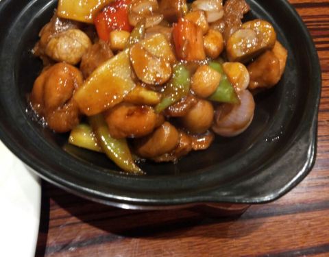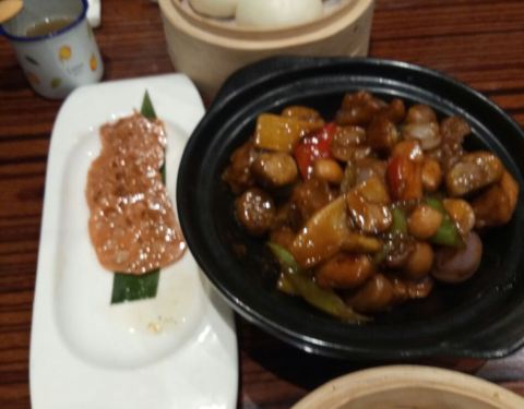 新开业的特色怀旧主题餐厅,环境很有特色,都是老物件,放的歌曲也都是金曲老歌,菜品的话很常规,感觉一般,没点太多,可能跟小伙伴都是90后,对校门口的圆筒那个都没印象。三杯栗子鸡还不错,奶黄包和叉烧包中规中矩,桂花藕量很小。