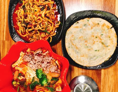 - 还点了个鱼香肉丝一大盘1万出头,手抓饼2000一个,都是地地道道的中国味,很多韩国人都来吃哦