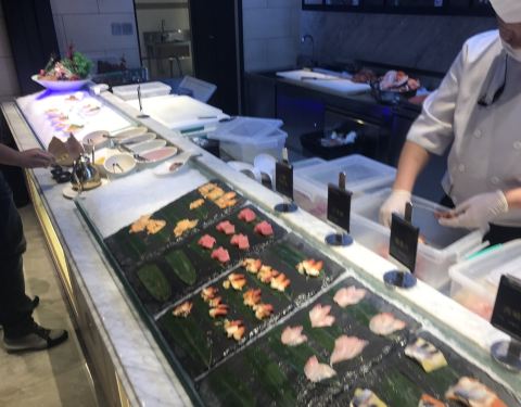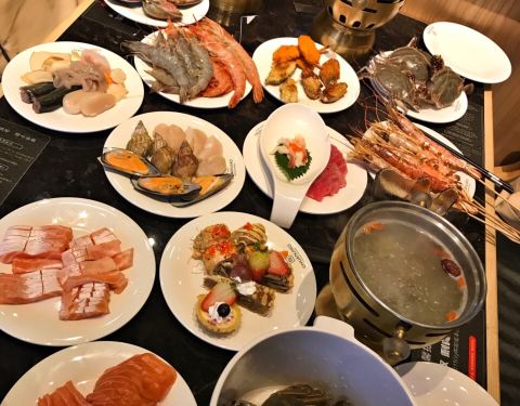 提前预约了座位,中午11:30准时入场,有预约的客人可以先入场,服务员引位到临近餐台的座位,方便取海鲜,用餐环境干净舒适,服务员太热情了,是非常贴心的那种热情,弄的我有点不太适应 食材新鲜,没有什么需要排队等侯的情况,海蟹一般,虽然鲜活但有些空,河蟹非常肥美,三文鱼腩涮着吃别有一番风味,不充会员没有北极贝供应,整体属于性价比相符的一家自助餐厅!