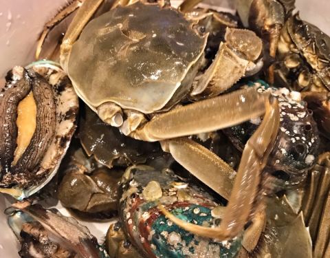 - 主要选的是虾,河蟹,各种贝类,还拿了一些三文鱼,海鲜都比较新鲜,口感还不错。地方挺大的,环境还不错