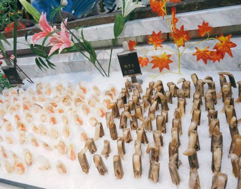 - 食材不新鲜,味道很一般。 种类极其简单,补食材服务不到位,经常出现空盘现象!低端的海鲜自助价格却离谱