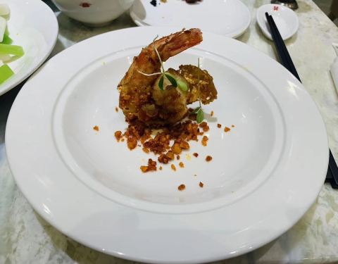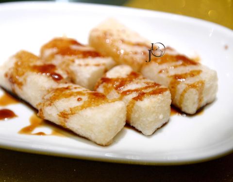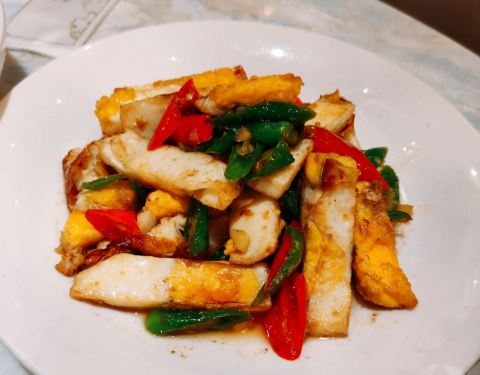 芝麻蟹虽然有些辣,不过辣在蟹壳外,蟹肉还是蛮鲜香有质感的。似乎每次去孔雀都是奔着鳕鱼狮子头的