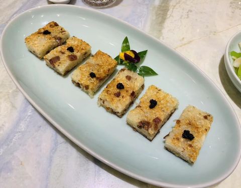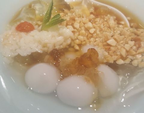 似乎每次去孔雀都是奔着鳕鱼狮子头的。大大的鳕鱼球,味道鲜美柔和,在小米汤中更温柔。每个狮子头里都有一块南瓜,吃这个狮子头的感觉像是在吃小米南瓜鱼肉粥。鱼香菠萝凤球龙虾,酸酸甜甜的,也不是辣味,很喜欢。有海鲜的质感。芝麻蟹虽然有些辣,不过辣在蟹壳外,蟹肉还是蛮鲜香有质感的。蛋酥糍粑是最喜欢的,红糖汁带来甜香,令人回味。