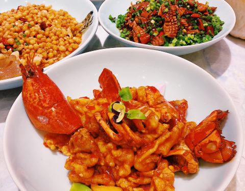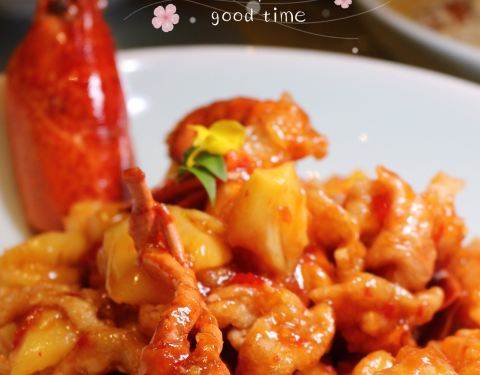 似乎每次去孔雀都是奔着鳕鱼狮子头的。大大的鳕鱼球,味道鲜美柔和,在小米汤中更温柔。每个狮子头里都有一块南瓜,吃这个狮子头的感觉像是在吃小米南瓜鱼肉粥。鱼香菠萝凤球龙虾,酸酸甜甜的,也不是辣味,很喜...