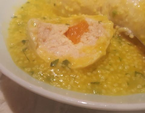 似乎每次去孔雀都是奔着鳕鱼狮子头的。大大的鳕鱼球,味道鲜美柔和,在小米汤中更温柔。每个狮子头里都有一块南瓜,吃这个狮子头的感觉像是在吃小米南瓜鱼肉粥。鱼香菠萝凤球龙虾,酸酸甜甜的,也不是辣味,很喜...似乎每次去孔雀都是奔着鳕鱼狮子头的。大大的鳕鱼球,味道鲜美柔和,在小米汤中更温柔。每个狮子头里都有一块南瓜,吃这个狮子头的感觉像是在吃小米南瓜鱼肉粥。鱼香菠萝凤球龙虾,酸酸甜甜的,也不是辣味,很喜欢。有海鲜的质感。芝麻蟹虽然有些辣,不过辣在蟹壳外,蟹肉还是蛮鲜香有质感的。蛋酥糍粑是最喜欢的,红糖汁带来甜香,令人回味。