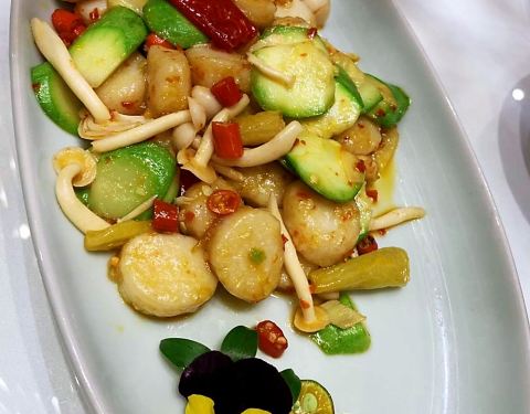 气温高台跳水的日子里,川菜是一种很好的选择。位于国金的这家金孔雀川菜环境高雅,白色与金色为主色调的装潢改变了我脑中对川菜馆的印象。重庆飘香豌豆江团是他家的招牌之一。鲜嫩的江团隐藏在金黄酥脆的黄豆之下,鱼肉很入味,也不会散开,没有刺。吃一口鱼肉,嚼几颗黄豆,不失为下班后的一种享受。腊八豆荷包蛋,看似家常,但还真没吃过。荷包蛋被切成一块块,配以腊八豆,别有一番风味。这家的菜还有个特点就是量都很足。比如毛血旺,大大的一碗,里面有鳝背,腰花,鱿鱼等等,底下是血,午餐肉,莴笋,全都是实实在在的食材,味道鲜香浓郁。另外点的几个菜也都不错,无一踩雷,吃完整个人热乎乎的,带着满足回家了。